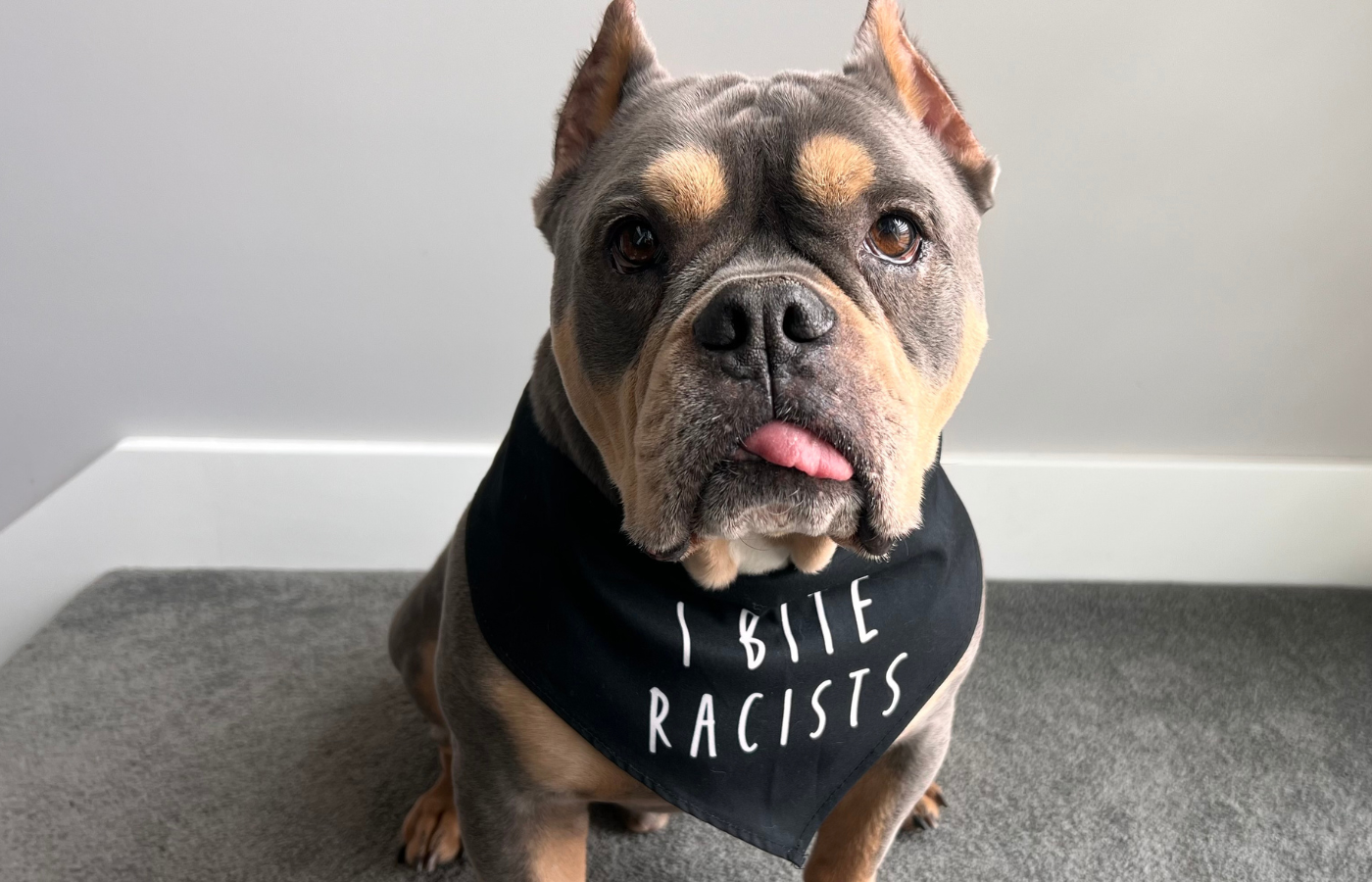 This is a great bandana with an important message. My dog is ready for his next protest! I also appreciated how quickly my order was processed and shipped. Thanks again!