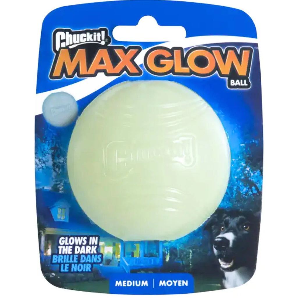 • At Cogs Dogs, our nights don't end when the sun goes down and neither does playtime. Just ask our chief toy tester, Meatball, who lives for this ball. The Chuckit! Max Glow® Ball is one of his all-time favorites for a reason: it glows bright, grips great, and keeps fetch going well into the moonlight.
